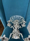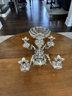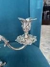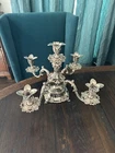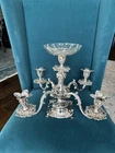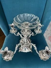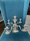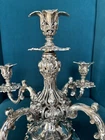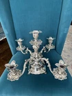 This beautiful Candelabra is silver plated. It is from Reed & Barton and numbered #166. It holds 5 taper candles, one in the center and four from the arms. Also included is the original center bowl w no chips or cracks. The bowl is beautiful for flowers or remove it and add an additional candle. This candelabra measures approx. 12.5 inches tall x 20 inches wide x 20 inches deep. This piece is circa the 1950's. An absolutely amazing and timeless centerpiece for any table... a real show stopper!! **Candelabra is used and in excellent condition.