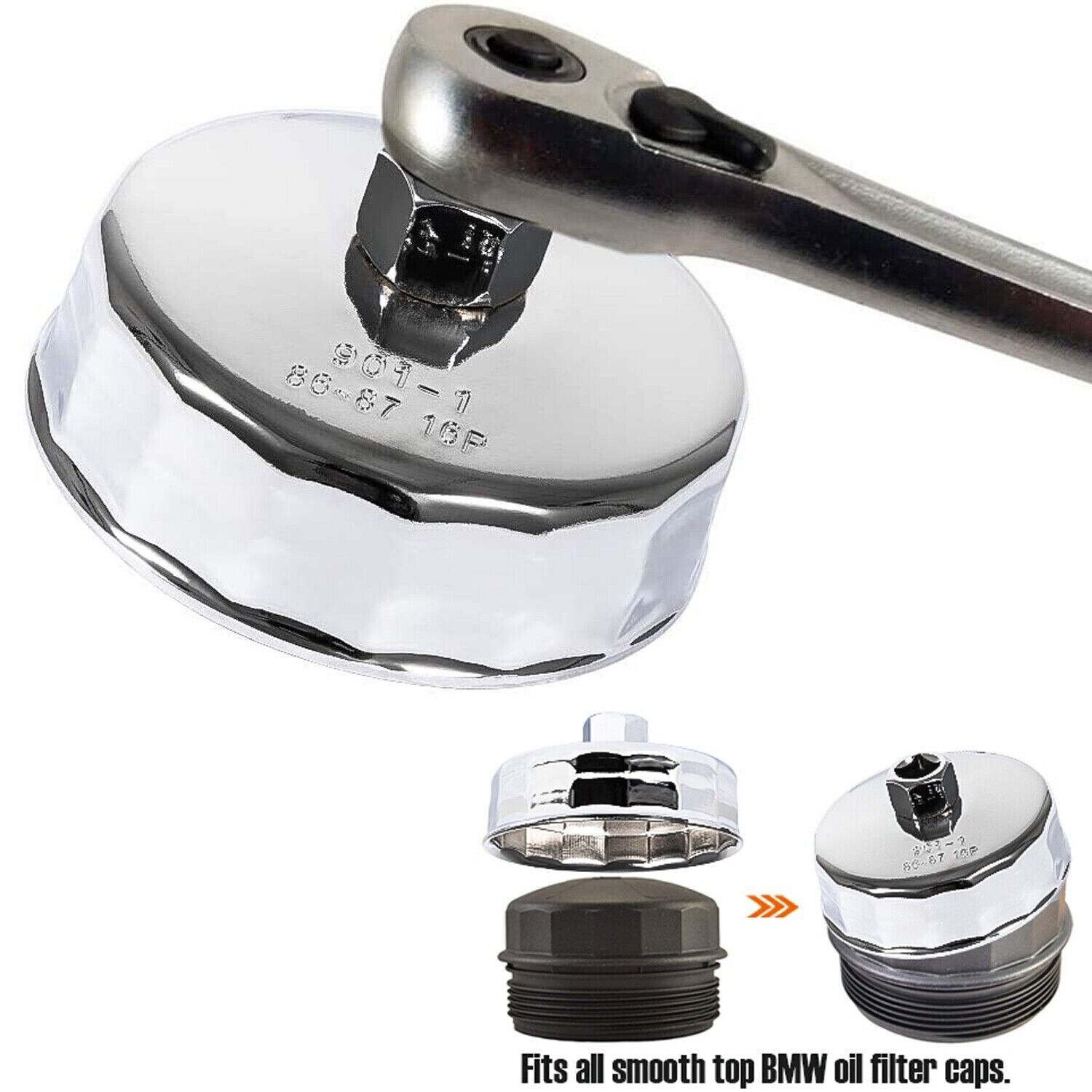 Fitment: Fits for Volvo: C70, S40, S60, S70, S80, V40, V70, XC70, and XC90. Does not fit the Volvo 3.2L 6 Cylinder Engines Volvo C70 1998 – 2004 2.3 L Volvo C70 1998 – 2005 2.4 L Volvo S40 1999 – 2004 1.9 L Volvo S60 2001 – 2004 2.0 L Volvo S60 2001 – 2005 2.3 L Volvo S60 2001 – 2009 2.4 L Volvo S60 2003 – 2009 2.5 L Volvo S70 1998 – 2000 2.3 L Volvo S70 1998 – 2000 2.4 L Volvo S80 1999 – 2003 2.8 L Volvo S80 1999 – 2006 2.9 L Volvo S80 2004 – 2006 2.5 L Volvo S80 2007 – 2010 4.4 L Volvo V40 1999 – 2004 1.9 L Volvo V70 2001 – 2004 2.3 L Volvo V70 2001 – 2007 2.4 L Volvo V70 2003 – 2007 2.5 L Volvo XC70 2003 – 2007 2.5 L Volvo XC90 2003 – 2005 2.9 L Volvo XC90 2003 – 2014 2.5 L Volvo XC90 2005 – 2011 4.4 L Fits BMW (check your car model and year) Manufacturer Model Year Engine BMW 1 Series M 2011 N54B30A BMW 125i 2009 – 2010 N54B30A BMW 128i 2008 – 2013 N51B30A BMW 128i 2008 – 2013 N52B30A BMW 130i 2006 – 2010 N52KB30 BMW 135i 2008 – 2010 N54B30A BMW 135i 2011 – 2013 N55B30A BMW 135is 2013 N55B30A BMW 220i 2014 – 2020 N20B20U0 BMW 228i 2014 – 2020 N20B20A BMW 228i xDrive 2015 – 2020 N20B20A BMW 235i 2014 N55B30O0 BMW 320i 2012 – 2015 N20B20A BMW 320i xDrive 2013 – 2015 N20B20A BMW 323i 2006 N52 BMW 323i 2007 – 2011 N52N BMW 325i 2006 N52 BMW 325i 2007 – 2013 N52KB25 BMW 325i 2011 – 2013 N54B30 BMW 325xi 2006 N52 BMW 328i 2007 – 2013 N51B30A BMW 328i 2007 – 2013 N52 BMW 328i 2009 – 2010 N52B30A BMW 328i 2012 – 2015 N20B20A BMW 328i GT xDrive 2014 – 2016 N20B20A BMW 328i xDrive 2009 – 2010 N52B30A BMW 328i xDrive 2009 – 2013 N51B30A BMW 328i xDrive 2009 – 2013 N52 BMW 328i xDrive 2013 – 2015 N20B20A BMW 328xi 2007 – 2008 N51B30A BMW 328xi 2007 – 2008 N52 BMW 330i 2006 N52 BMW 330i 2007 N54B30 BMW 330xi 2006 N52 BMW 335i 2007 – 2010 N54B30A BMW 335i 2007 – 2012 N54B30 BMW 335i 2011 – 2015 N55B30A BMW 335i GT xDrive 2014 – 2020 N55B30A BMW 335i xDrive 2009 – 2010 N54B30A BMW 335i xDrive 2011 – 2015 N55B30A BMW 335is 2011 – 2013 N54B30A BMW 335xi 2007 – 2008 N54B30A BMW 420i 2016 N20B20U0 BMW 420i Gran Coupe 2016 N20B20U0 BMW 428i 2014 – 2020 N20B20A BMW 428i 2014 – 2020 N20B20O0 BMW 428i Gran Coupe 2015 – 2020 N20B20A BMW 428i Gran Coupe 2015 – 2020 N20B20O0 BMW 428i xDrive 2014 – 2020 N20B20A BMW 428i xDrive Gran Coupe 2015 – 2020 N20B20A BMW 435i 2014 – 2020 N55B30A BMW 435i 2014 – 2020 N55B30M0 BMW 435i Gran Coupe 2015 – 2020 N55B30A BMW 435i xDrive 2014 – 2020 N55B30A BMW 435i xDrive Gran Coupe 2015 – 2020 N55B30A BMW 525i 2010 N52KB30 BMW 525i 2006 – 2007 N52 BMW 525i 2006 – 2010 N52KB25 BMW 525xi 2006 – 2007 N52 BMW 528i 2011 N52KB25 BMW 528i 2011 N52KB30 BMW 528i 2008 – 2011 N52B30A BMW 528i 2012 – 2016 N20B20A BMW 528i xDrive 2009 – 2010 N52B30A BMW 528i xDrive 2012 – 2016 N20B20A BMW 528xi 2008 N52B30A BMW 530i 2006 – 2007 N52 BMW 530i 2006 – 2013 N52KB30 BMW 530i 2012 – 2013 N52KB25 BMW 530xi 2006 – 2007 N52 BMW 535i 2008 – 2010 N54B30A BMW 535i 2011 – 2020 N55B30A BMW 535i GT 2010 – 2020 N55B30A BMW 535i GT xDrive 2011 – 2016 N55B30A BMW 535i xDrive 2009 – 2010 N54B30A BMW 535i xDrive 2011 – 2020 N55B30A BMW 535xi 2008 N54B30A BMW 640i 2012 – 2020 N55B30A BMW 640i Gran Coupe 2020 N55B30O0 BMW 640i Gran Coupe 2013 – 2016 N55B30A BMW 640i xDrive 2014 – 2020 N55B30A BMW 640i xDrive Gran Coupe 2014 – 2020 N55B30A BMW 740i 2011 – 2012 N54B30A BMW 740i 2013 – 2015 N55B30A BMW 740Li 2011 – 2012 N54B30A BMW 740Li 2013 – 2015 N55B30A BMW 740Li xDrive 2013 – 2015 N55B30A BMW ActiveHybrid 3 2013 – 2015 N55B30A BMW ActiveHybrid 3 2014 – 2015 N55B30M0 BMW ActiveHybrid 5 2012 – 2020 N55B30A BMW ActiveHybrid 7 2013 – 2015 N55B30A BMW M135i 2014 – 2020 N55B30O0 BMW M235i 2014 – 2020 N55B30A BMW M235i 2015 – 2020 N55B30O0 BMW M235i xDrive 2015 – 2020 N55B30A BMW X1 2012 – 2020 N20B20A BMW X1 2013 – 2015 N55B30A BMW X3 2007 – 2010 N52 BMW X3 2007 – 2011 N52KB25 BMW X3 2007 – 2011 N52KB30 BMW X3 2009 – 2012 N52B30A BMW X3 2011 – 2020 N55B30A BMW X3 2013 – 2020 N20B20A BMW X4 2015 – 2020 N20B20A BMW X4 2015 – 2020 N55B30A BMW X5 2007 – 2010 N52B30A BMW X5 2007 – 2011 N52KB30 BMW X5 2011 – 2020 N55B30A BMW X6 2008 – 2010 N54B30A BMW X6 2011 – 2020 N55B30A BMW Z4 2006 – 2008 N52 BMW Z4 2007 – 2011 N52KB25 BMW Z4 2007 – 2020 N52KB30 BMW Z4 2009 – 2011 N52B30A BMW Z4 2009 – 2020 N54B30A BMW Z4 2012 – 2020 N20B20A BMW Z4 2015 – 2020 N52KB25 Description: Size: 86.6 MM Flutes: 16 Hex Drive Socket Size: 27mm / 1-1/16" Material: high quality steel Features: This oil filter wrench is specifically designed and tested to fit BMW and Volvo vehicles which have a cartridge style oil filter with an 86mm 16 flute oil filter cap. 86mm oil filter caps have a smooth top such as the one shown in the photos. If your oil filter cap has a bolt through the center or a large nut on top this wrench is NOT compatible with your vehicle. This wrench isn't for use with traditional disposable spin-off canister style oil filters. Package includes: 1pc 86mm Oil Filter Wrench Cap Tool