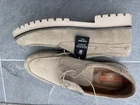 The Silver Street Men's Shoes in size 11 are stylish slip-on lace up loafers in a beige colour, perfect for casual occasions. Made of suede with a synthetic lining and insole, these shoes offer comfort and durability. The outsole is made of rubber, providing a sturdy base for everyday wear. With a classic loafer style and standard shoe width, these Silver Street shoes are a versatile addition to any man's wardrobe.