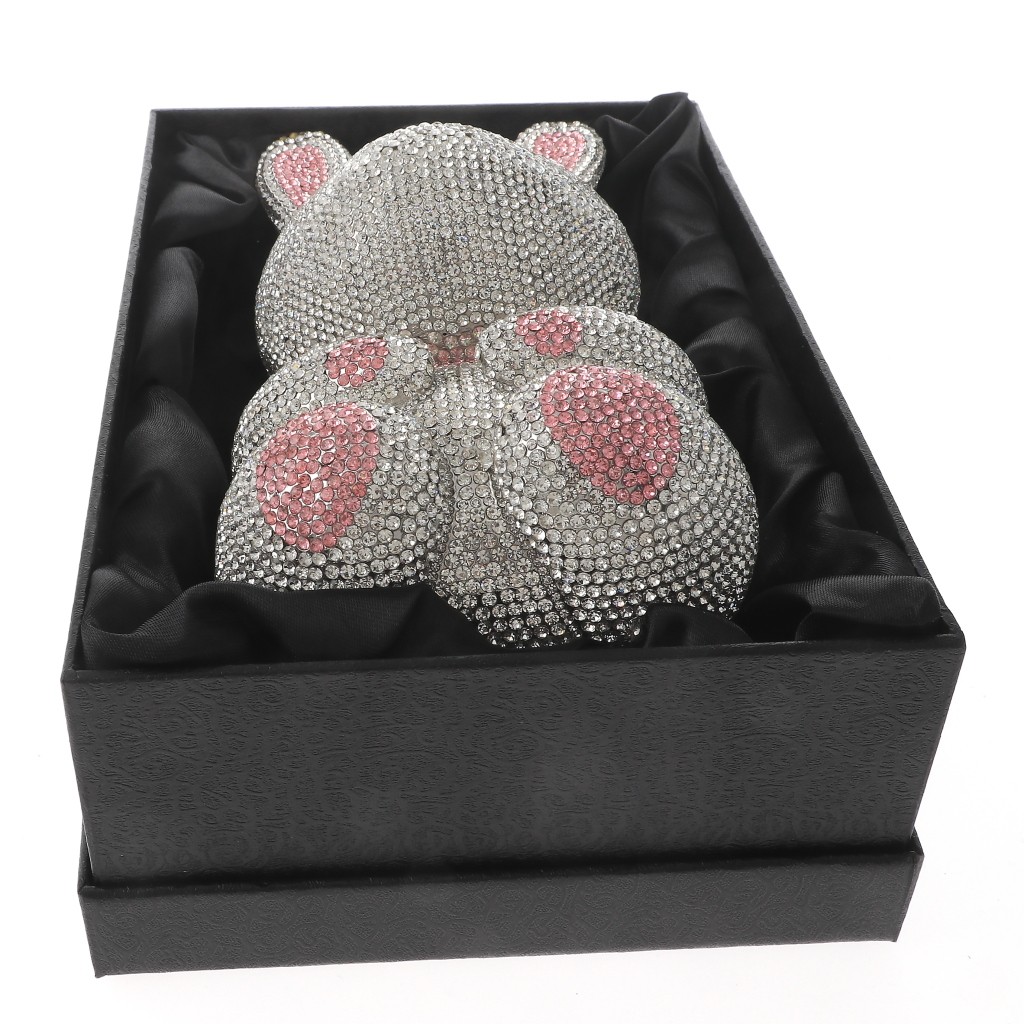 Silver Tone Alloy Metal Rhinestone Crystal Clutch Evening Bag / Approximate Size: 4.5" L x 4" W x 8.25" H / 20" Long Chain Included / Color: Silver & Clear, Pink Condition: Brand New SKU: HB6300-CLR Color: Clear Design: Animal All orders will ship from USA via UPS or USPS. We expect all local orders will receive the items within 7 business days or less depend the location. Worry free international shipment delay or custom duty fee.
