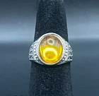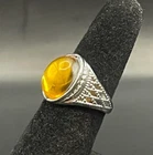 Silver Tone Amber Yellow Rhinestone Ring - Size 4