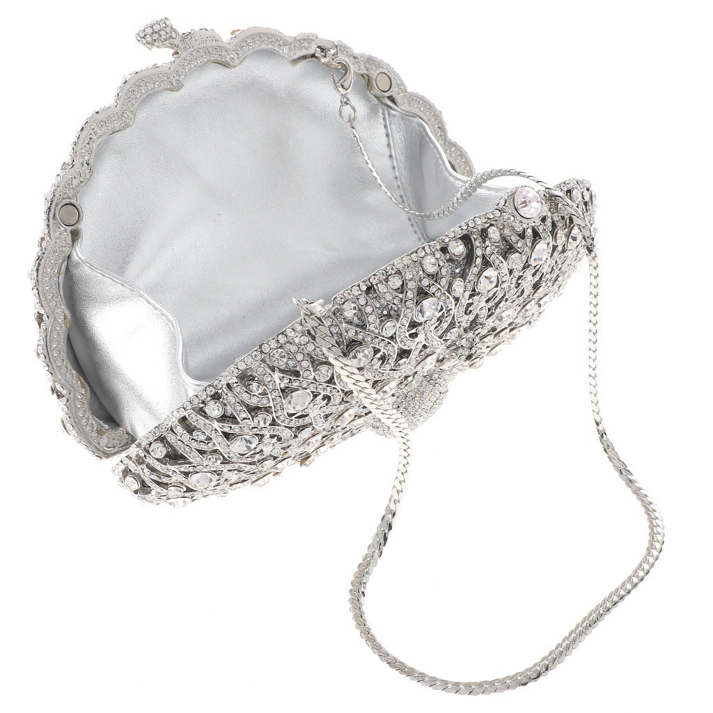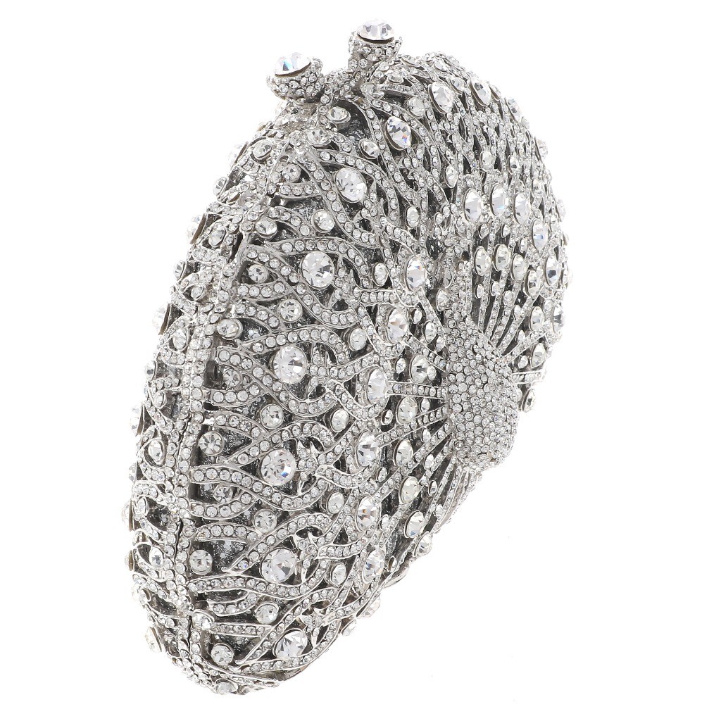 Silver Tone Metal Frame High End Rhinestone Clutch Bag / Peacock / Size: 7" L x 4" H x 2.75" W / Chain Size: 21" L / Color: Silver & Clear Condition: Brand New SKU: HB0066-SIL Color: Clear Design: All orders will ship from USA via UPS or USPS. We expect all local orders will receive the items within 7 business days or less depend the location. Worry free international shipment delay or custom duty fee.