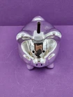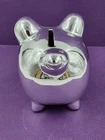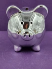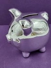 Silver Tone Metal Piggy Coin Bank 4x4" W/Plug Momentum Brands Good pre-owned piggy bank. Minor use/handling marks noted. See photos for condition detail. Great way to encourage young children to save or for the piggy bank collector!