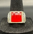 Silver Tone Ruby Rhinestone CZ Ring - Size 10