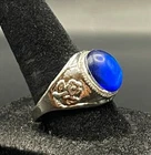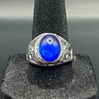 Main Stone Color: Blue Handmade: No Main Stone Shape: Brilliant Cut Band Width: Unknown Base Metal: Stainless Steel Country/Region of Manufacture: China Secondary Stone: No Stone Cut Grade: Excellent Main Stone Depth: Unknown Number of Gemstones: Unknown Sizable: No Main Stone Width: Unknown Country of Origin: Unknown Wholesale: No Signed: No Metal Purity: Unknown Gemstone Clarity Grade: Unknown Metal: Stainless Steel Seller Warranty: No Brand: Unbranded Main Stone Length: Unknown UPC: Does not apply gtin13: Does not apply Occasion: Anniversary, Birthday, Christmas, Father's Day, Graduation Vintage: Yes Antique: Yes Ring Size: 8 Style: Band, Cocktail Modified Item: No Features: Engraved, Nickel-Free Material: Rhinestone, Unknown Theme: Biker Main Stone: Crystal Main Stone Creation: Unknown Era: Undated Color: Silver Type: Ring Customized: No Personalize: No Setting Style: Solitaire Shape: Asymmetrical