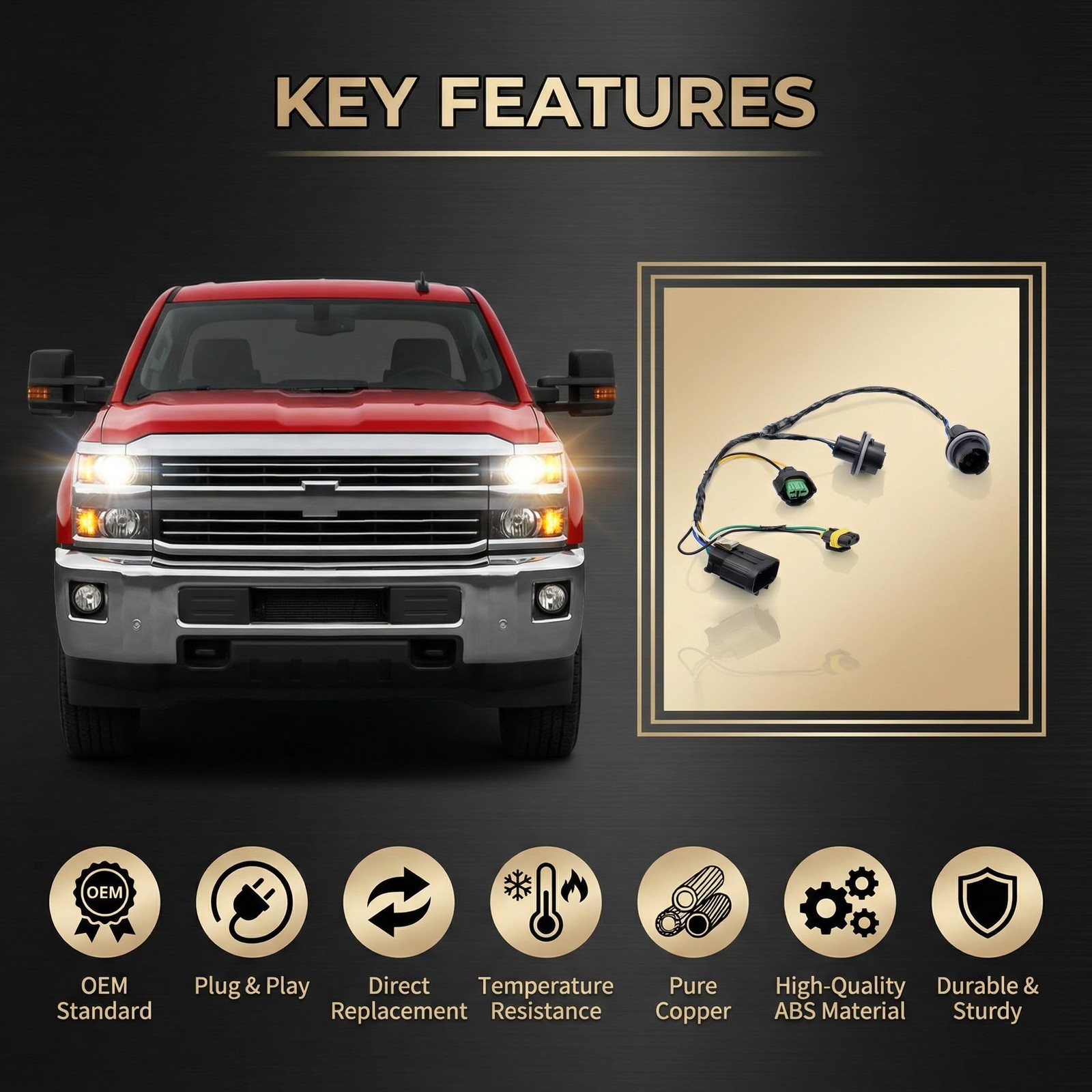 Fitment: 2008-2014 Ch-evy Silverado 1500 2500HD 3500HD When your vehicle front headllights do not work, this wire harness assembly may be your choice to well resolve the issue This 645-745 wiring harness assembly with two lamp sockets and three connectors. Kindly please check the description or use the year make model drop down bar and interchangeable part numbers to confirm the compatibility before purchasing Original Equipment (OE) Number: 645-745,15841609, 25962806 Durably designed for a long service life, also suitable for a broad range of industrial and commercial uses,including H7, 9005, 9006 and more Package includes: 1 piece of 645-745 headlight wire harness assembly