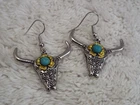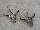 Silvertone Southwestern Steer Skull Pierced Earrings (D70)