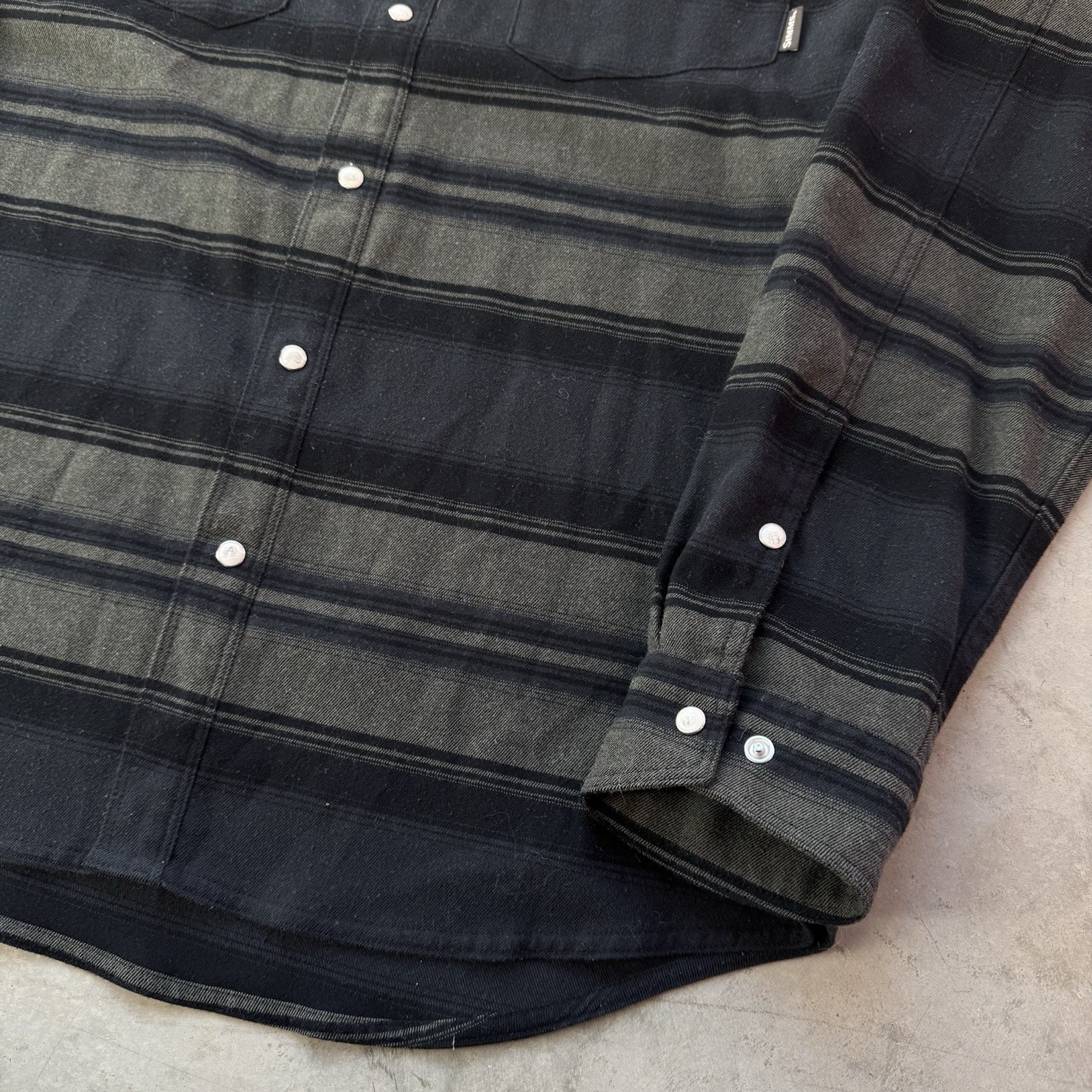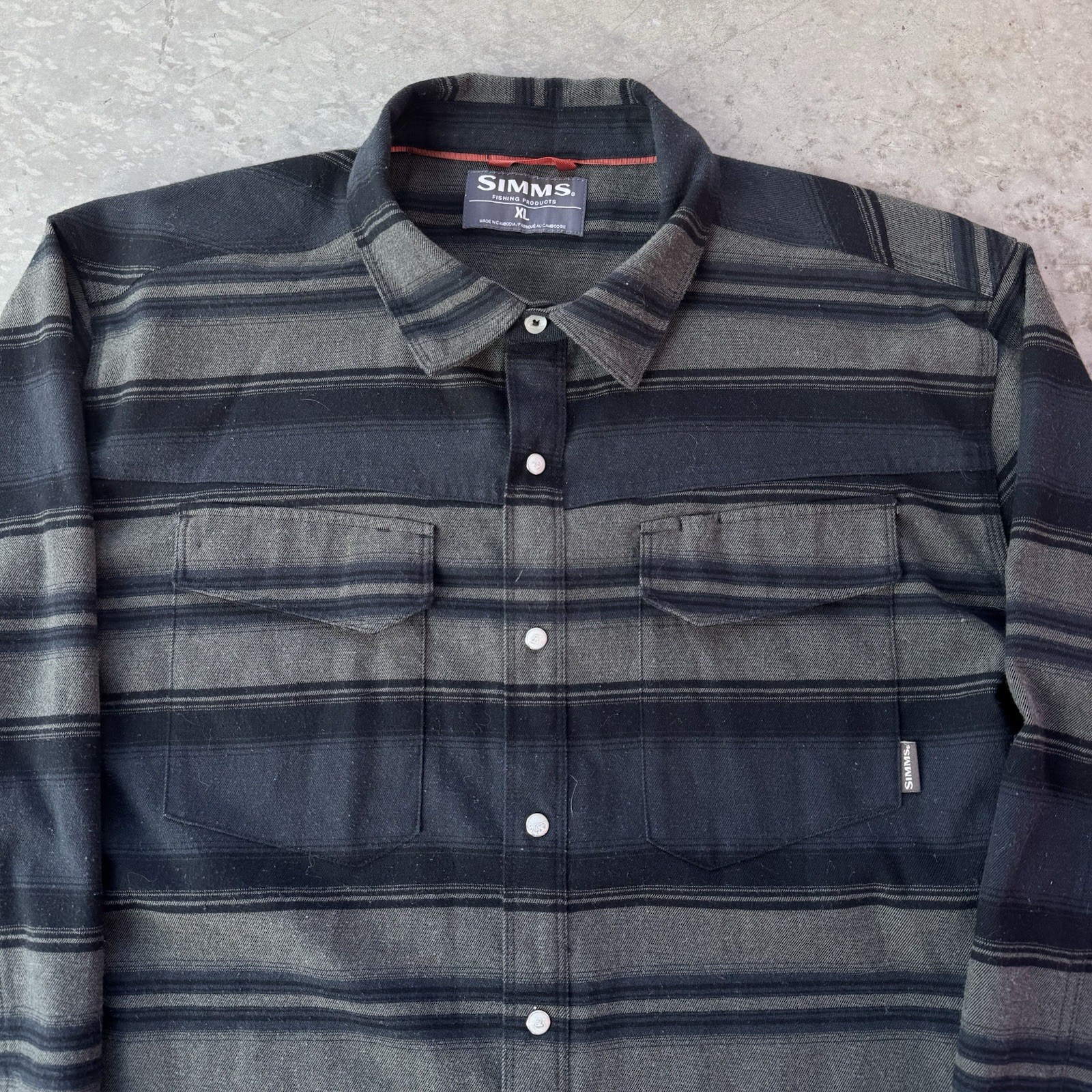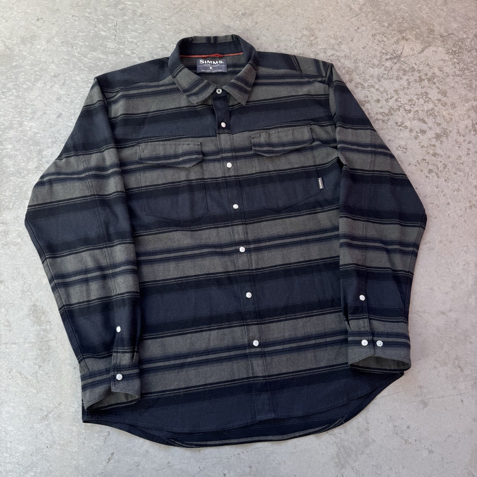 Simms Gallatin Flannel Shirt Striped Pearl Snap Western Fishing Button Size XL - good condition, no major flaws - tagged size XL - 25” pit to pit - 32” length - 26.5” shoulder to sleeve hem - See measurements because it may not fit like a traditional piece. - To ensure best fit, measure your best fitting similar styled garment you own and compare to the measurements provided below. - Measurements will tell you exactly how it fits. - Tried to include all signs of wear or flaws in pictures. - What you see is what you get so make sure you look carefully through out pictures. - Returns allowed within 30 days of purchase but buyer pays return shipping.