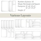 Return Policy Fast Delivery Trusted seller SimpleSort 10-Piece Stackable Clear Drawer Organizer Set | Multi-size Trays | Makeup Vanity Storage Bins and Office Desk Drawer Dividers | Made in USA Product Description American made with high-quality, durable BPA-free clear plastic. Domestic production of these organizers provides you with the peace of mind that you're buying a product that contributed less carbon emissions to the atmosp from creation to delivery than those produced overseas. Multipurpose trays will help maximize space around the home, allowing you to keep every room tidy. Organization and storage with these clear acrylic bins allows you to find what is in each quickly, making organizing fast and easy. The stackable design makes these organizers compatible with both shallow and deep drawers that are found in bathrooms, kitchens, cabinets, closets, and offices. They make a great space saving option for cosmetics, makeup, jewelry, kitchens utensils, cleaning tools, and office supplies. Customize your layout of these containers to fit any bathroom, dresser, vanity, or desk drawer space. Multiple layout combinations can be created using the same set of dividers. Purchase additional sets as your organizing needs for everyday items such as make up and other household supplies expand. Set of ten includes four different sizes (5) 9-inch by 2-inch, (2) 3-inch by 3-inch, (2) 6-inch by 3-inch, and (1) 9-inch by 6-inch shallow drawer organizers. And with additional sizes available, you have the freedom to expand your organizational arsenal to tackle any cluttered drawer with finesse. Shipping Returns Payment Shipping Shipping is FREE to all addresses other than APO/PO boxes in the lower 48 states. All our stock ships from US-based warehouses. Shipped via USPS or UPS (depending on location and package weight) Unless stated otherwise, all orders will ship within 24-72 hours of your payment being processed. Check our feedback to see the great reviews of FAST shipping we offer. Returns Seller does not accept returns Payment We currently accept payment via eBay managed payments only. Once payment is cleared, we will dispatch your shipment within 1-3 business days. Please refer to the "Shipping" tab for more information regarding shipping speed to your destination.