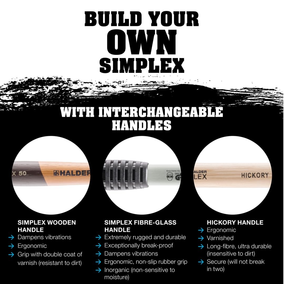 SIMPLEX soft-face mallet with the insert combination of TPE-soft (blue, soft, no marring) / superplastic (white, medium hard, very durable) Cast iron housing with integrated handle protection sleeve and excellent break resistance High-quality, vibration-damping, and ergonomically shaped wooden handle; grip area with double coat of varnish (resistant to dirt) All parts can be replaced / retrofitted, resulting in great savings in cost and resources Available in sizes of D30mm to D60mm.