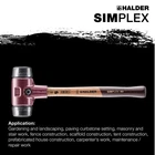 SIMPLEX soft-face mallet with composite rubber inserts (black, medium hard, impact cushioning, odourless, low-wear) on both sides. Cast iron housing with integrated handle protection sleeve and excellent break resistanc High-quality, vibration-damping, and ergonomically shaped wooden handle; grip area with double coat of varnish (resistant to dirt) All parts can be replaced / retrofitted, resulting in great savings in cost and resources Available in sizes ranging from D30mm to D80mm, as a sledge hammer, and in size D60mm with rubber insert and “stand-up”.