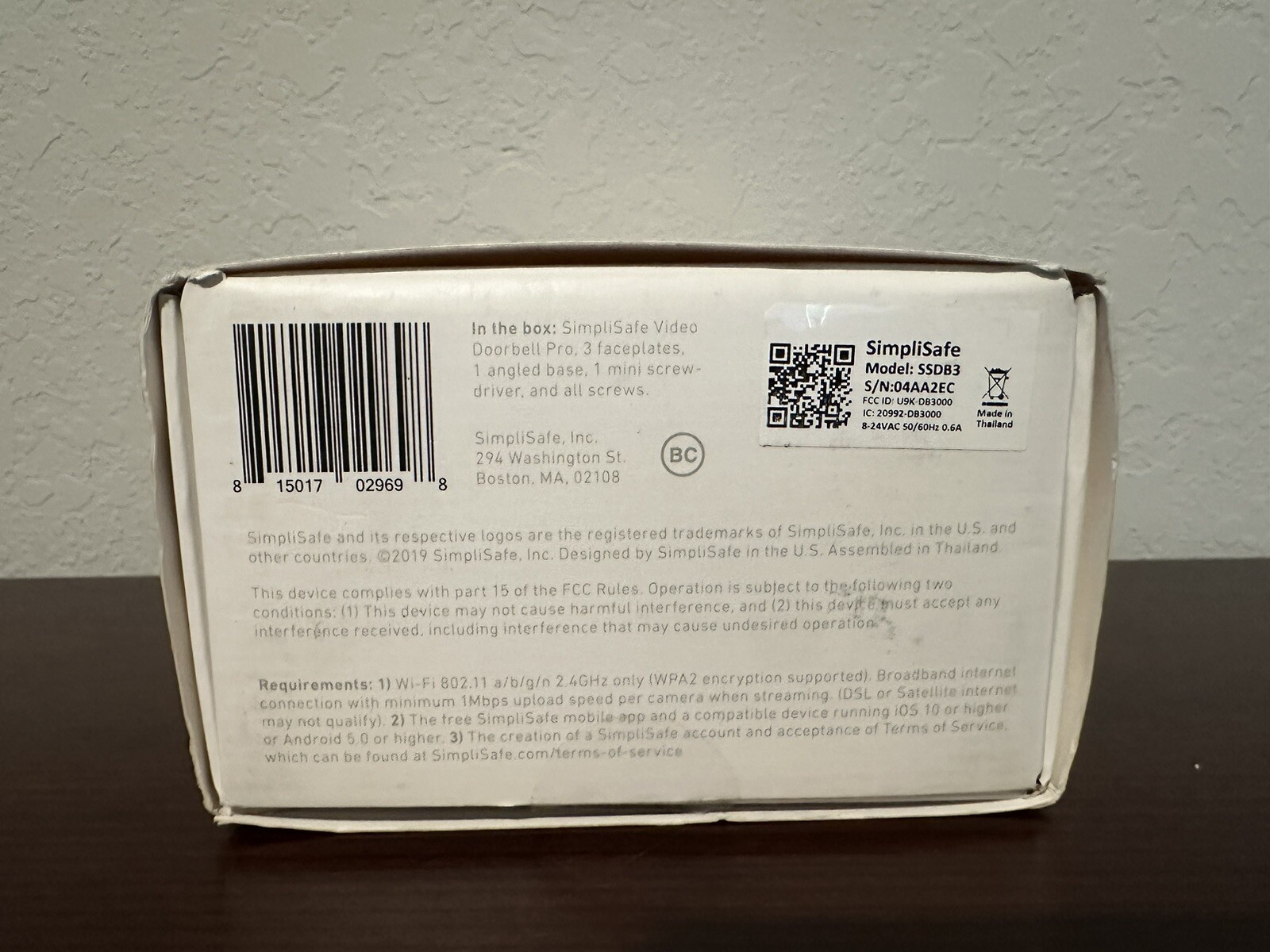 Introducing the SimpliSafe Video Doorbell Pro Wired SSDB3 in sleek black color. This video doorbell is designed to keep you connected with your home even when you're away. With 2-way audio feature, you can talk to your visitors from anywhere using your smartphone. The motion activation technology alerts you as soon as someone approaches your door. The button shape is round and the package includes only the video doorbell. It is a great addition to your smart home for added security and convenience. Content is new just open box