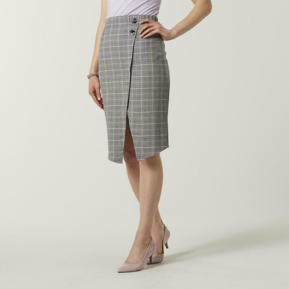 Black Plaid Check Pencil Skirt Simply Styled Pull On Work Dress Size Small