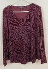 Simply Vera Vera Wang womens size XL Burnout velvet animal print top burgundy color lined bodice semi sheer sleeves, long sleeves measurements in photos whimsigoth, fairy, goth