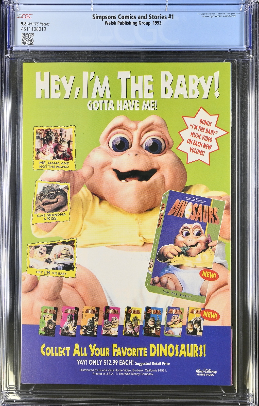 Welcome comic book community to the Destroyer of Worlds Comics store and our listing for Simpsons Comics and Stories 1 CGC 9.8 We are a small shop and our focus is to bring the best buying experience to our customers. Destroyer of Worlds Comics is an authorized CGC Dealer which grants us access to the CGC database for all graded book details which are included in every listing along with the hi resolution scans taken by CGC. We know that buying comics online can be stressful so we proactively eliminate the most common sources of stress by packing our comics professionally using BCW Graded Comic Bags and then placing them into sturdy 200 lb test boxes to withstand any mishandling while in transit with the carrier. When we receive an order it becomes top priority and your order is immediately pulled from inventory and packaged properly to arrive in your hands as quickly as possible. Our goal is for you to not worry about your order arriving late or guessing when it will be shipped. When you buy from our store you will also receive hassle free 30 day returns and we will cover the shipping cost back to us if you decide to make a return. We hope our commitment to protecting comics and servicing our customers provides a trustworthy and pleasant experience and thank you for considering us. The images in the listing are the actual item you will receive after purchasing. If you have any questions prior to making a decision please reach out and we will answer promptly. We are located in southern Florida not far from CGC and add new listings regularly so please take a look at our other listings if you are looking for CGC graded books and favorite us as a seller if you enjoyed buying from us. CGC Certification Info Title: Simpsons Comics and Stories Issue: 1 Grading Company: CGC Grade: 9.8 CGC Cert #: 4511108019 Page Quality: WHITE Issue Date: 1993 Issue Year: 1993 Publisher: Welsh Publishing Group Grade Category: Modern Total Graded By CGC: In 9.8: 293 Grader Notes: None CGC Census Report CGC Database Query Time: 2025-01-07 09:22:18 Mint 10.0: 0 Mint 9.9: 0 Near Mint/Mint 9.8: 293 Near Mint+ 9.6: 412 Near Mint 9.4: 460 Near Mint- 9.2: 337 Very Fine/Near Mint 9.0: 279 Very Fine+ 8.5: 189 Very Fine 8.0: 116 Very Fine- 7.5: 53 Fine/Very Fine 7.0: 32 Fine+ 6.5: 11 Fine 6.0: 4 Fine- 5.5: 1 Very Good/Fine 5.0: 3 Very Good+ 4.5: 1 Very Good 4.0: 0 Very Good- 3.5: 0 Good/Very Good 3.0: 0 Good+ 2.5: 0 Good 2.0: 1 Good- 1.8: 0 Fair/Good 1.5: 0 Fair 1.0: 0 Poor 0.5: 1 Case Condition We understand every collector has a unique set of standards when it comes to condition of the case and we often receive entire submissions with defects therefore we make every effort to note those conditions in the listing since they are often not visible in the scanned images. Nearly every case we receive from CGC has at least one of the following defects: grade on label not centered, label mounted crooked, newton rings, scuffing, scratches, case stress from the sealing process or inner well movement. To keep you informed before making a purchase decision we note major defects like cracks, newton rings, heavy scratches, and major scuffing in the listing but do not list the minor ones. If there are any flaws you dislike in particular please message us and we would be happy to review any of our listings and get back with you with every flaw we can find on the case. In the event the case arrives and is not to your satisfaction please reach out and we will offer to replace it if we have one available in better condition or a return can be opened at no cost within 30 days to receive a full refund. Pricing All fixed price listings are firm. We price our books at fair value according to recently sold listings but do realize prices fluctuate frequently when auctions are involved so we sometimes create auction listings for a chance at reduced prices for those who enjoy the thrill of the hunt. We also regularly run promotional coupon codes for volume discounts on orders of multiple fixed price listings so be sure to add listings to your watchlist and check back frequently. Shipping Policy Destroyer of Worlds Comics typically ships your items same day or next business day after payment is made. CGC graded comics are wrapped both vertically and horizontally in 5/16 inch bubble wrap and then placed into a 200 lb test corrugated box for protection. Ungraded comics are shipped in Gemini Comic Mailers. Combined shipping is offered for both domestic and international buyers. Please note for international orders any additional import fees duties taxes or customs charges are the sole responsibility of the buyer. These charges are determined by your country's customs office and we unfortunately have no influence over the amount charged or the duration of the assessment process due to the customs forms being automated. Please be aware that customs procedures and policies vary from country to country. If you have any concerns or questions regarding import fees duties or taxes we recommend contacting your local customs office before making a purchase. Return Policy Free returns available on all CGC graded books within 30 days of purchase.