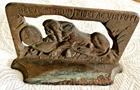 THIS IS A SINGLE VINTAGE LION OF LUCERNE BOOKEND, METAL WITH COPPER WASH, GREEN TINGE IS FROM COPPER, HAMMERED BACK, MEASURES APPROX. 7 1/2" X 1 7/8" AT BASE, 4" TALL. NO RESERVE.