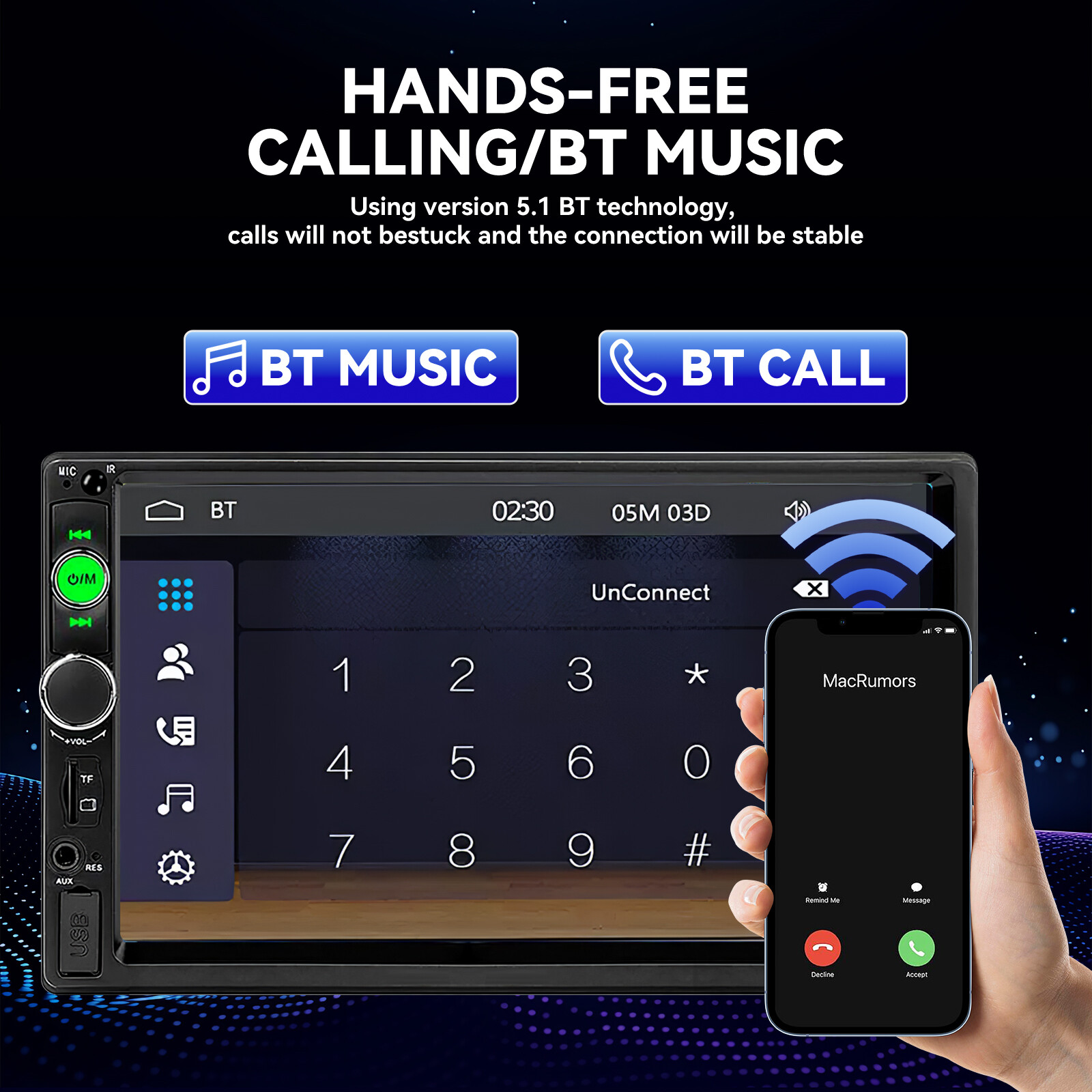7 inch single 1 Din Car Stereo Radio Mp5 Player Apple CarPlay/Android Auto Features 1. Mobile phone interconnect Android AUTO / Apple CarPlay 2. Smartphone Mirror Link Android / iOS 3. Radio FM 4. U disk (audio / video / photo) 5. AUX input function 6. Bluetooth function 7. RCA audio output can be connected to the subwoofer 8. Reverse rear view function (Camera Optional!) 9. Button seven color to choice 10. Video entry 11. Original car steering wheel learning function Product details Model: F7010c Voltage: DC 12V Type: Car MP5 Player System: Sunplus ecos system Configuration: Full capacitive touch screen Size: Single 1 din Screen size: 7 inches Resolution: 1024x600 Panel size: 178x100mm Lighting panel: 7 Color lights Host depth: 55mm Single weight: 680g CarPlay: Wired connection Android Auto: Wired connection Mirrorlink: Miirorlink (Android / iPhone) Radio: FM1/FM2/FM3 Radio chip: ZT0811 Power: 60W Audio Output: 4x 50W Temperature: -10 ~ 60 ℃ Reverse image: Support Brake reminder: Support Steering Wheel Control: Support Bluetooth: version 5.0 Amplifier chip: CD7388 Radio frequency: FM 87.5 ~ 108MHz Video output: Support Remote control: 21 silicone keys USB interface: Front panel USB 2.0 Reset Button: Have RCA terminal: 2 audio output, 1 reverse input, 1 video input, 2 video output AUX input: Have Audio Format: MP3 / WMA / AAC / APE / OGG / M4A / RA / WAV Video Format: H264 HD (720P 1080I 1080P) AVI / FLV / MKV / RMVB / MPEG / ASF / TS / H264 / QT Picture format: JPEG / PNG / BMP / GIF / TIFF Language: English / Spanish / Portuguese / Simplified Chinese / Chinese / Traditional Chinese / German / French / Turkish / Japanese / Russian / Italian / Polish / Dutch / Danish / Greek / Israelis Packing List 1 x Car MP5 Player 1 x Power Cable 1 x Remote Control 1 x Steering Wheel control remote 1 x Microphone 1 x User Manual Shipping About us Payment Ruturns Contact us Shipping Please read for your own benefit and understanding on our shipping items. All the items will be dispatched to you within 2 business day. The pacakge you can tracking on the USPS, Fedex, UPS, or DHL. Purchase price do not cover any applicable tax or duty that might be charged by customs ,buyers are responsible for such charges. If you have not received your package as our declaring in description please contact me before you want to leave feedback we can refund money or resend item as your choice. For the vast majority of orders, we will ship within 24 hours of your payment. Please be patient and we'll timely update order status for you. Each product has shown our hearts to you, and we believe that our products will not disappoint you for your patience. About us Welcome to our eBay store. As a leading and emerging company in manufacturer and exporting business, we are specialized in Business and Industrial Products, Sporting Goods, Pet Products, Home and Garden products for more than 10 years. We believe that it is our vision and mission to provide innovative products with best service and competitive price to satisfy you. Our goal is to make sure that you can find exactly what you are looking for and make it easy for you to place your orders. Payment Payment should be completed within 4 (Four) days of auction closing. Or unpaid dispute will be filed for closing auction. We will leave a positive feedback immediately after payment is received. We appreciate a positive feedback as much as you do. If for some reason there is any issue with the purchase, please contact us prior to leaving feedback, we will be glad to work together and provide a satisfying solution. Ruturns All of our items are backed with a 30-day return policy. We ensure all our items are new and in excellent condition prior to shipping. In case you receive the item that is not to the standards above, please contact us via e-Bay messages. All returns must be in new original condition as received and should be shipped with delivery confirmation Please note that all returns must be pre-approved by us. Unauthorized returns will not be accepted. If you need to return, please check twice to confirm the item not work and contact our customer service representative, let us know the detailed problem and send us some pictures for confirmation. We ONLY accept returns with original package. Please make sure that item has NO man-made sabotage. Used items will not be accepted for return. Contact us We will reply message or E-mail in 7-10 hours Our working time : M onday - Sunday 9:00am-22:30pm ( GMT+08:00 Beijing ) 1:00am-14:30pm ( GMT+00:00 London ) 19:00pm-08:30pm ( GMT+06:00 USA / Canada )