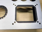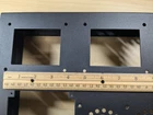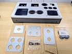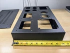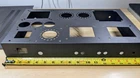 One empty stereo chassis for your dream SET amp project. Heavy steel construction with a brushed aluminum top plate. Brushed aluminum sub assemblies pre-punched for: 4 noval or octal small signal input/driver tube sockets. 3/4" & 1-1/8" holes 2 power tubes- 1-1/8" octal or 4 pin sockets 1 rectifier tube, octal The heavy duty welded steel chassis has a tough black wrinkle finish. Machined for drop thru or potted power, choke and output iron. Additional holes for power switch, indicator lamp, IEC mains plug, fuse holder, RCA inputs, banana jacks,etc. Nice design. The aluminum top plate will cover screws needed for terminal strips, etc. I bought this new years ago for an abandoned amp project. I never mounted any components on it and it is stock except where I enlarged the hole in the aluminum top plate (only) for a power transformer I intended to use. See photo detail. Nothing else has been modified. Comes as shown; main chassis, bottom plate, top plate, all the sub-plates, bag of screws and nuts, rubber feet. Guaranteed as described. Will be carefully packed and promptly shipped. Standard shipping
