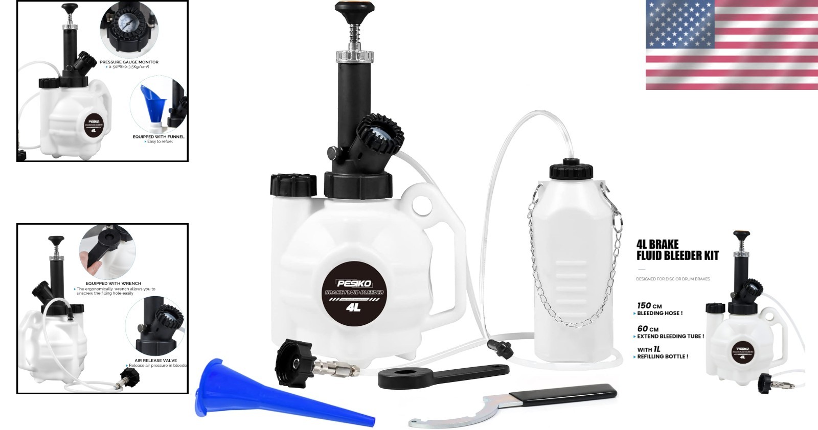 Single-Person Brake Bleeder Kit with 4L Reservoir - Efficient Auto Maintenance ‹ › ‹ › ‹ › ‹ › ‹ › ‹ › ‹ › ‹ › Single-Person Brake Bleeder Kit with 4L Reservoir Efficient Auto Maintenance Features: Efficient Single-Person Operation: Designed for one-person use, this manual brake bleeder is perfect for replacing brake fluid, allowing you to save both time and effort on essential maintenance tasks. Large Capacity Reservoirs: Equipped with a generous 4 L fluid reservoir and a 1 L reservoir bottle, this kit provides ample capacity to manage fluid replacement without the hassle of frequent refills, streamlining your process. Durable Material for Easy Cleaning: Crafted from robust high-rigidity plastic, this brake fluid bleeder is built for longevity. The reservoirs and manual pump are easily disassembled for cleaning, ensuring continued efficiency. Convenient Design: Comes with a user-friendly round wrench for easy access to caps, a pressure gauge for monitoring reservoir pressure, and a pressure release valve for quick fluid release. The extended 150cm hose allows effortless access to those hard-to-reach areas, while the funnel ensures smooth pouring of brake fluid. Excellent Customer Service: Enjoy peace of mind with our comprehensive customer service, guaranteeing timely and professional assistance for any issues you may encounter during use. Benefits: Simplifies brake maintenance, ideal for DIY enthusiasts Large capacity reduces the need for constant refilling Durable materials ensure long-lasting performance Ergonomic design enhances user experience Reliable customer support for hassle-free usage Why Choose Our Brake Bleeder Kit? Transform your auto maintenance with our Single-Person Brake Bleeder Kit, specifically designed for efficiency and ease of use. With its large reservoirs and durable construction, you can tackle brake fluid replacements quickly and conveniently, without compromising quality. Enjoy the confidence that comes with knowing you're using a reliable tool that is supported by prompt customer service. Make each maintenance task a breeze – order your kit today! Shipping Free & Fast Shipping - We offer free shipping to most of the USA with a normal delivery time of 3-10 businessdays. However, due to various situations, additional delivery time (up to 3 weeks) may be required for some items. Alternative Carriers - We may use alternative carriers (e.g. USPS, FedEx, UPS, etc.) to ensure your package arrives safely and on time. Due to the use of multiple carriers, we are unable to provide a tracking number automatically. Handling Time - Orders are processed and shipped within 1-5 business days of receiving cleared payment. Shipping Restrictions - Shipping to Alaska, Hawaii, Puerto Rico, Guam, and other US territories may incur shipping charges or delivery restrictions. Please contact us before ordering, or your order can be refunded/cancelled. State Restrictions - There may be restrictions based on your state of purchase. For example, certain items may not be shipped to California due to state regulations. Contact for Tracking Updates - If you require tracking updates or have any concerns about the delivery of your order, please feel free to contact us, and we will be happy to assist you. Return Please see our ebay return policy. We do not accept return on most products. This is to avoid customers mis-using ebay returns. All sales are final. Please be sure to check the return policy listed at the top of the listing. In rare cases, we may accept returns, if the buyer pays both ways shipping and 20% restocking fee. If you are un-sure of return policy of a particular item, please ask before buying. Payment We accept all major credit cards, PayPal, and Apple Pay for your convenience. Your payment information is secure and encrypted to ensure a safe and seamless transaction. Please complete your payment within 3 days of purchase to avoid any delays in shipping. Feedback Your feedback is extremely important to us. We strive to provide the best products and customer service possible. If you are satisfied with your purchase, please take a moment to leave us a positive review. If you have any concerns or issues with your order, please contact us before leaving negative feedback. We are committed to resolving any problems and ensuring your satisfaction. Contact Us If you have any questions or concerns, please feel free to reach out to our customer support team. You can contact us through the eBay messaging system. We are available Monday to Friday, 9:00 am to 5:00 pm EST, and we will do our best to respond to your inquiry within 24 hours. Buy it now and enjoy a pleasant shopping experience! Manufacturer Part Number: Brake Bleeder Kit UPC: Not Set Unit Quantity: 4.86 Type: Brake Caliper Rewind Tool,Brake Fluid Bleeder Kit,Brake Pressure Bleeder,Manual Brake Bleeder,Single Person Brake Bleeder Brand: Unbranded Warranty: 1 Year