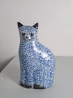 Sitting Cat Glazed Ceramic Porcelain Blue/ White 8.5" Tall Statue Figure Decor is in Good Pre-Owned Condition. Heavier Weight Piece. Nice!!