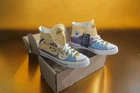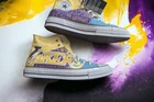 This is a pair of Converse Chuck Taylor All Star factory customized Chuck 70 sneakers in a high top style, featuring an LA Lakers theme with Lakers colorway and design. They are size 10 men's shoes with lace-up closure. The shoes are part of the Converse Chuck Taylor product line and this particular show is very hard to find, having only been available for a short time with this limited LA Lakers theme. The sneakers in the photos are the actual product you will receive. It will ship in the original box. These Chucks ship within one business day and come verified by eBay. Thank you for your interest in this listing. If you have a minute and feel like it. Check out some of my other products. There's new listings daily.