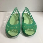 Size 10 Women’s Crocs Adrina Jelly Sandals Ballet Flats Open Toe Two Tone Green Please see photos for condition, quality and size details. Jelly flat with laser-cut upper featuring footbed with CrosLite material and circulation nubs Non-marking outsole 194C2/5/02253