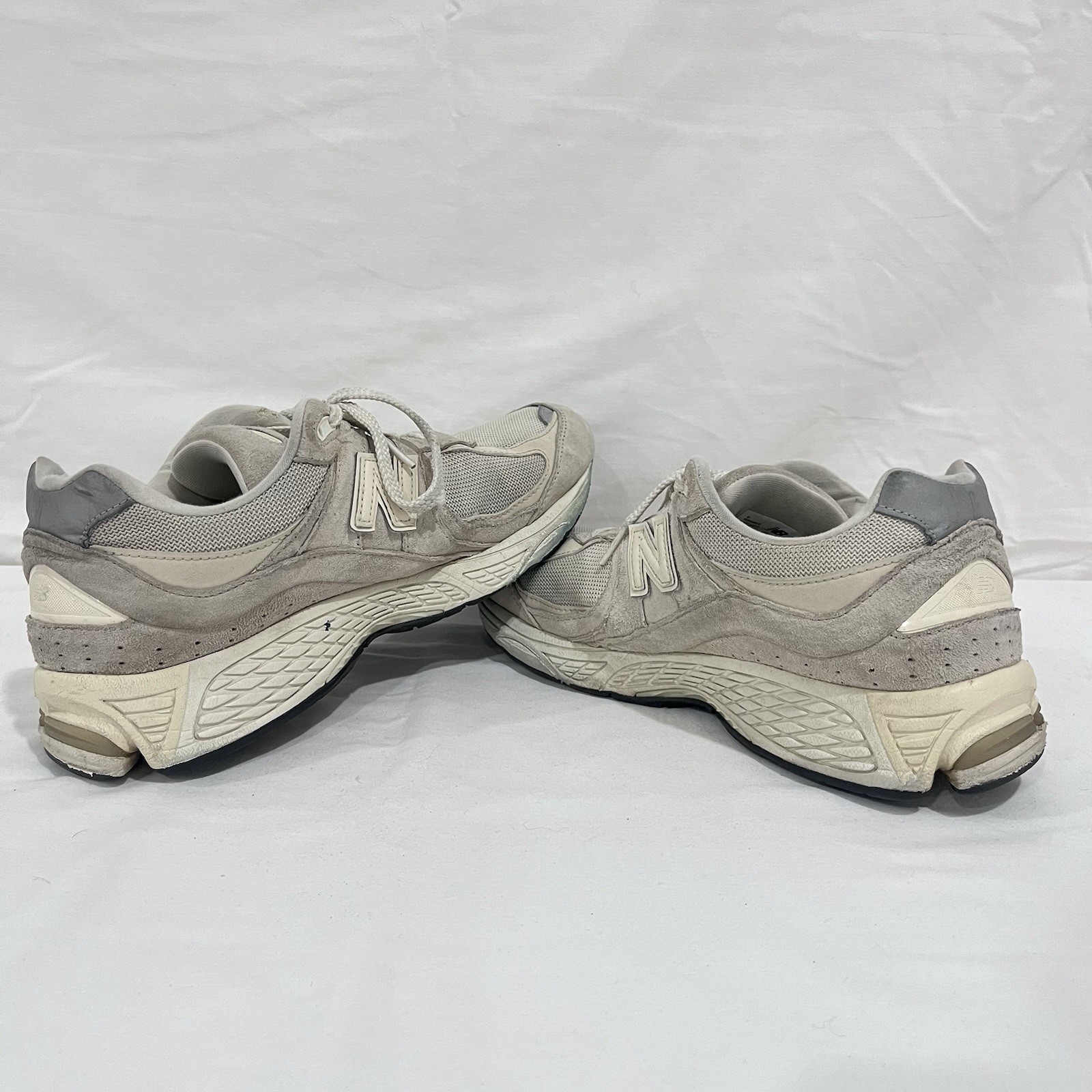 The product is a pair of New Balance 2002R Protection Pack sneakers in the Sandstone color, with a UK shoe size of 10 and a US shoe size of 10.5. These low-top sneakers feature a silver character and an ivory color, made with suede upper material. They are part of the New Balance 2002 product line, designed for athletic activities like boxing. The style code is M2002RDQ, and they are a standard width, released in 2023. The product does not come with a box. Pre owned - see pictures for reference Same day shipping no box