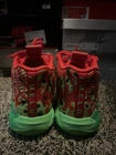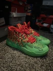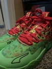This is a pre-owned PUMA MB.01 Thermal sneaker in size 10.5 for men. It features a Fluro Green Pes/Red color scheme with a mesh upper material. The style code is 310508-01, part of the PUMA Mb product line, and the model was released in 2024 with the nickname "Thermal." Worn for a few minutes around the house, literally. No box