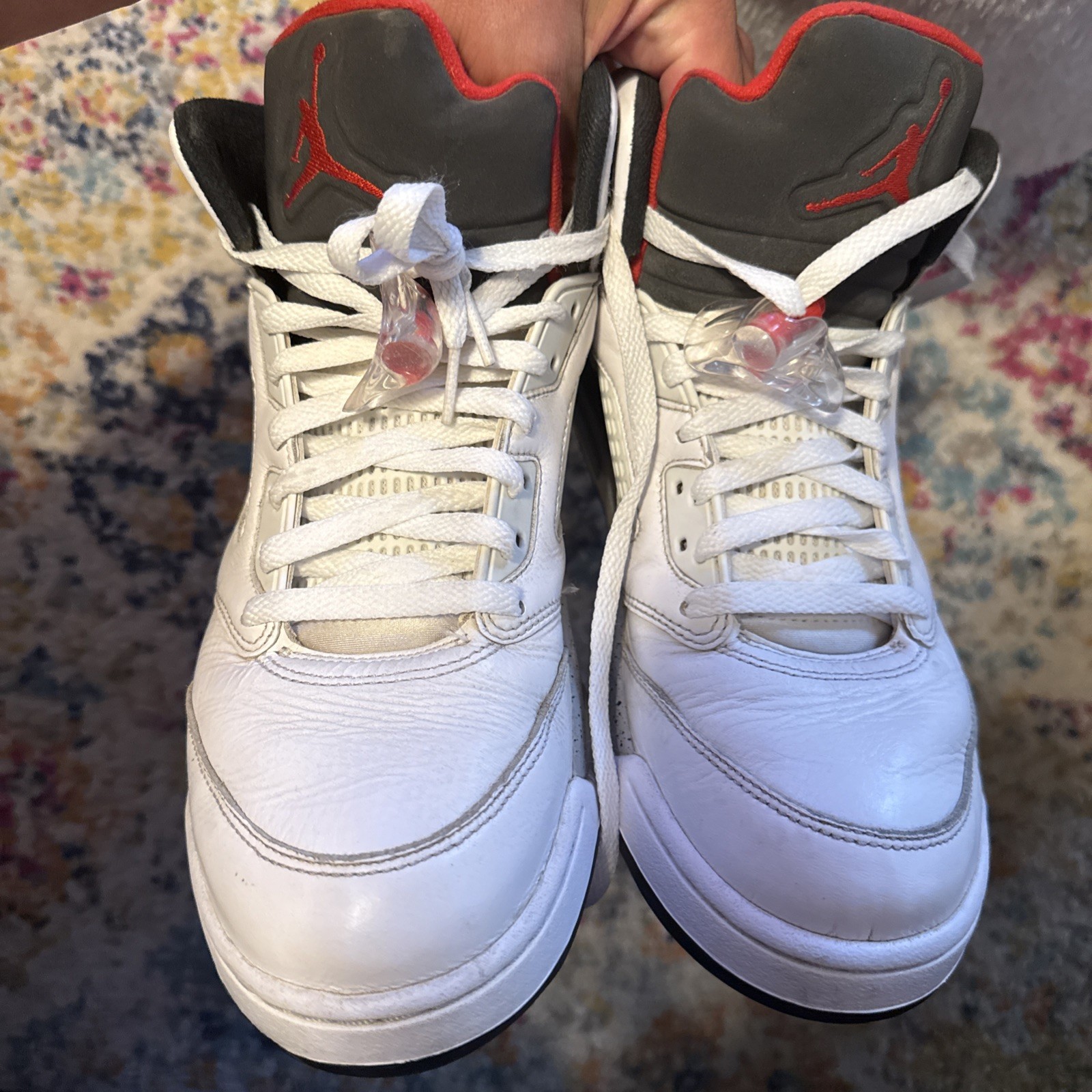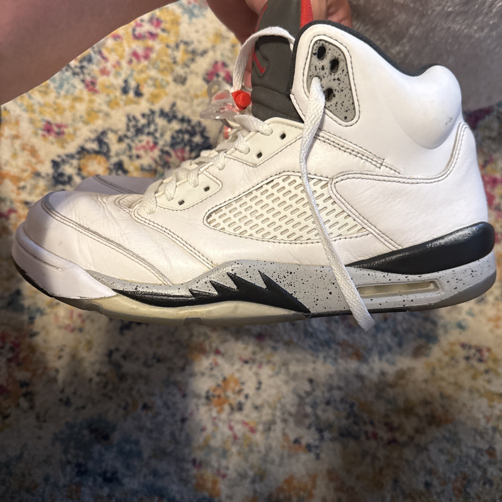 Used pair of size 11 Air Jordan 5s, white cement, with very little wear and tear.