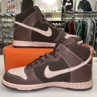 Elevate your sneaker game with these Nike Dunk High ‘Easter’ shoes. The brown suede upper material and high-top style provide a classic and versatile look that can be dressed up or down. These shoes were released in 2007 as part of the Nike Dunk product line and feature a unique Easter theme. Notably, these shoes come with their original box and have only been lightly worn. They are size 11 in US shoe size and 10 in UK shoe size. The standard shoe width ensures a comfortable fit for most. Perfect for athletic performance or casual wear, add these Nike Dunk High ‘Easter’ shoes to your collection today.