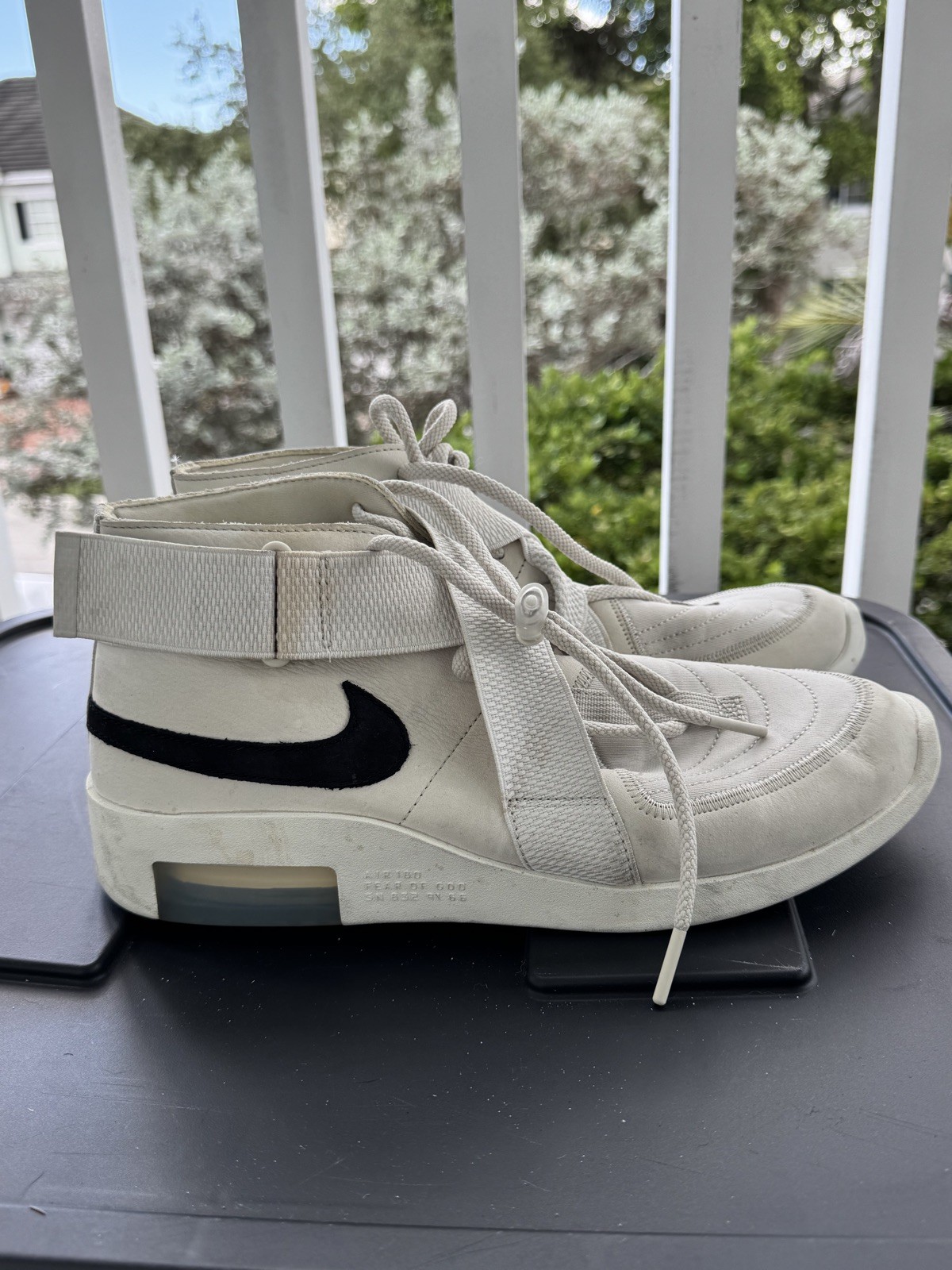 The Nike Air Fear of God Raid in Light Bone White is a stylish men's athletic sneaker released in 2019. Featuring a combination of Light Bone and Black-Sail colors, this sneaker is part of the Nike Air Fear of God product line. With a size 11.5 US shoe size and a unique design, this sneaker is sure to make a statement for any fashion-forward individual. Selling as is