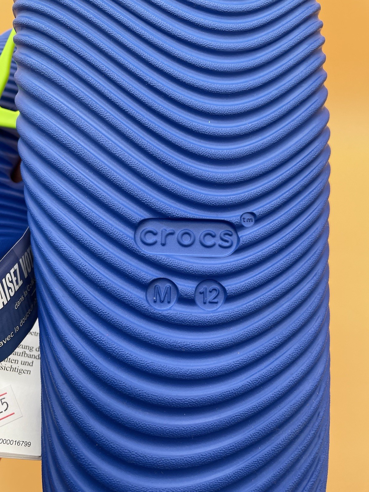 The product is a pair of size 12 Crocs men's mellow tide recovery slide slip-on sandals in blue bolt color. These sandals are designed for casual and travel occasions, featuring a slip-on closure for easy wear. Made from rubber material, they are suitable for summer, fall, and spring seasons. The style of the sandals is a slide, providing comfort and convenience for men looking for a stylish and practical footwear option.EU 46-47 , UK 11 Brand New