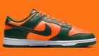 This Nike Dunk Low in size 12 features a green colorway inspired by the Miami Hurricanes with collaborations from Kith, Concepts, Supreme, Travis Scott. It is a limited edition sneaker with a cushioned comfort design, ideal for walking, skateboarding, or basketball. The shoe has a standard width, lace-up closure, low-top style, and is made of leather. Perfect for fans of college-themed footwear.