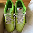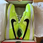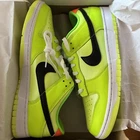 The Nike Dunk Low SE Splash Volt sneakers in size 12 feature a vibrant colorway of Volt, Black, Total Orange, and Green Strike. These athletic shoes are part of the Nike Dunk product line and have a low top shaft style with a leather upper. The model, FJ4610-702, showcases a unique design and is set to be released on June 15, 2023. Perfect for men looking for a stylish and eye-catching sneaker option, this Nike Dunk SE Splash Volt is a must-have for sneaker enthusiasts.