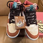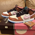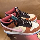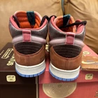 The product is a Nike Dunk sneaker in collaboration with Social Status, featuring a mid-top shaft style with a velour upper material in a brown "chocolate milk" colorway. It is a men's athletic shoe, part of the Nike Dunk product line, with a style code of DJ1173-700, released in 2021 and available in US shoe size 12. Slightly worn.