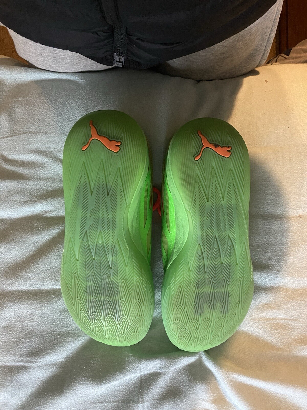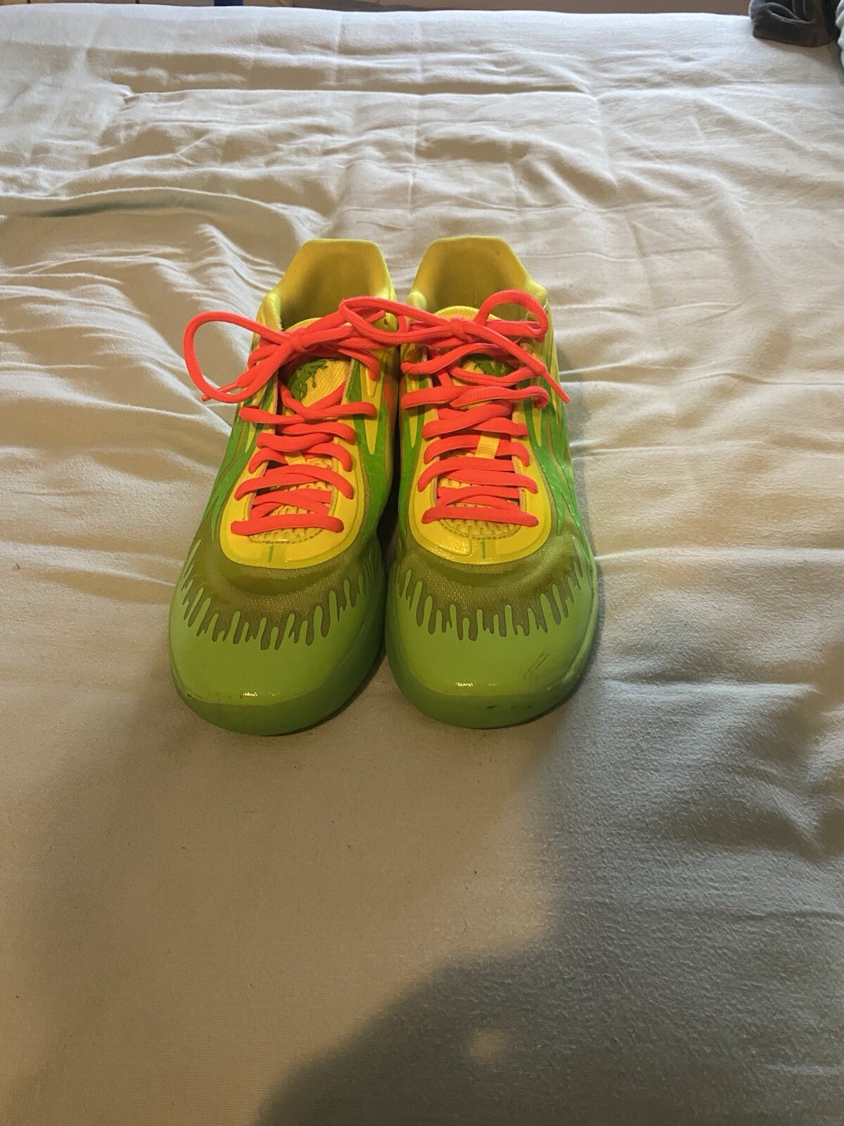 This PUMA Nickelodeon x MB.02 Slime sneaker in size 12 features a collaboration between PUMA and Nickelodeon. The design includes a green color scheme inspired by slime, with a mesh upper material for breathability and comfort. The shoe is part of the PUMA Mb product line, with style code 377584-01 and model number PUMA MB 02, released in 2022. Perfect for athletic use, this sneaker offers a unique and stylish option for PUMA and Nickelodeon fans alike.