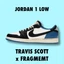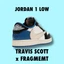 Get ready to elevate your sneaker game with the Air Jordan 1 Low OG Retro x Travis Scott Fragment. Worn once for a photo shoot OG ALL (Box, Sleeve, and all 4 laces) See pics slight damage on box lid corner. This limited edition shoe boasts a stylish low top silhouette, blue leather upper material, and comfortable features. The shoe is part of the iconic Air Jordan product line and was manufactured in 2021 in China. The size 13 sneaker is perfect for men who want to make a statement with their footwear. The shoe's style code is DM7866-140, and it is not customized. The Air Jordan 1 Low OG Retro x Travis Scott Fragment is a must-have for any sneaker enthusiast who wants to add a unique piece to their collection.