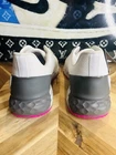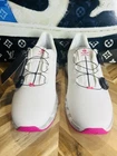 This is a pair of G/FORE G-Drive golf shoes in size 13 for men, featuring a low top style with a snow/pink camo grey colorway. The shoe is designed with cushioned, comfortable, and breathable features, making it suitable for walking and golfing activities. The sneaker style shoe is part of the G/FORE G-Drive product line, known for its colorful and stylish designs, and is suitable for those looking for a fashionable yet functional footwear option for the golf course.