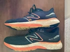 The Size 14 New Balance Fresh Foam X 880v12 Eclipse Vibrant Apricot sneakers are designed for men who prioritize comfort and performance. Featuring a low top shoe shaft style and a breathable mesh upper, these athletic shoes are perfect for running, cross training, and gym workouts. With a cushioned outsole and a supportive D width, the New Balance 880s offer stability and support for all-season wear. The vibrant apricot color adds a pop of style to your athletic ensemble, making them a versatile choice for any season. These 880s are still in great condition. I wore a few times for walking and jogging and that’s about it. Mild wear as shown in detailed photos. What you see is what you will receive. Non-smoking home. Flashy kicks for your neighborhood endeavors.