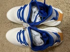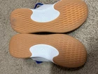 The product is a pair of women's athletic shoes by Adidas, featuring a white and royal blue color scheme with a gum sole. These sneakers are part of the Adidas Cloudfoam Pure line and are designed for a size 5.5 UK (4 US). The upper material is textile and the style code is JI4878. The model is the Adidas Cloudfoam Pure and they are set to be released in the year 2025. These shoes are perfect for active women looking for stylish and comfortable athletic footwear.