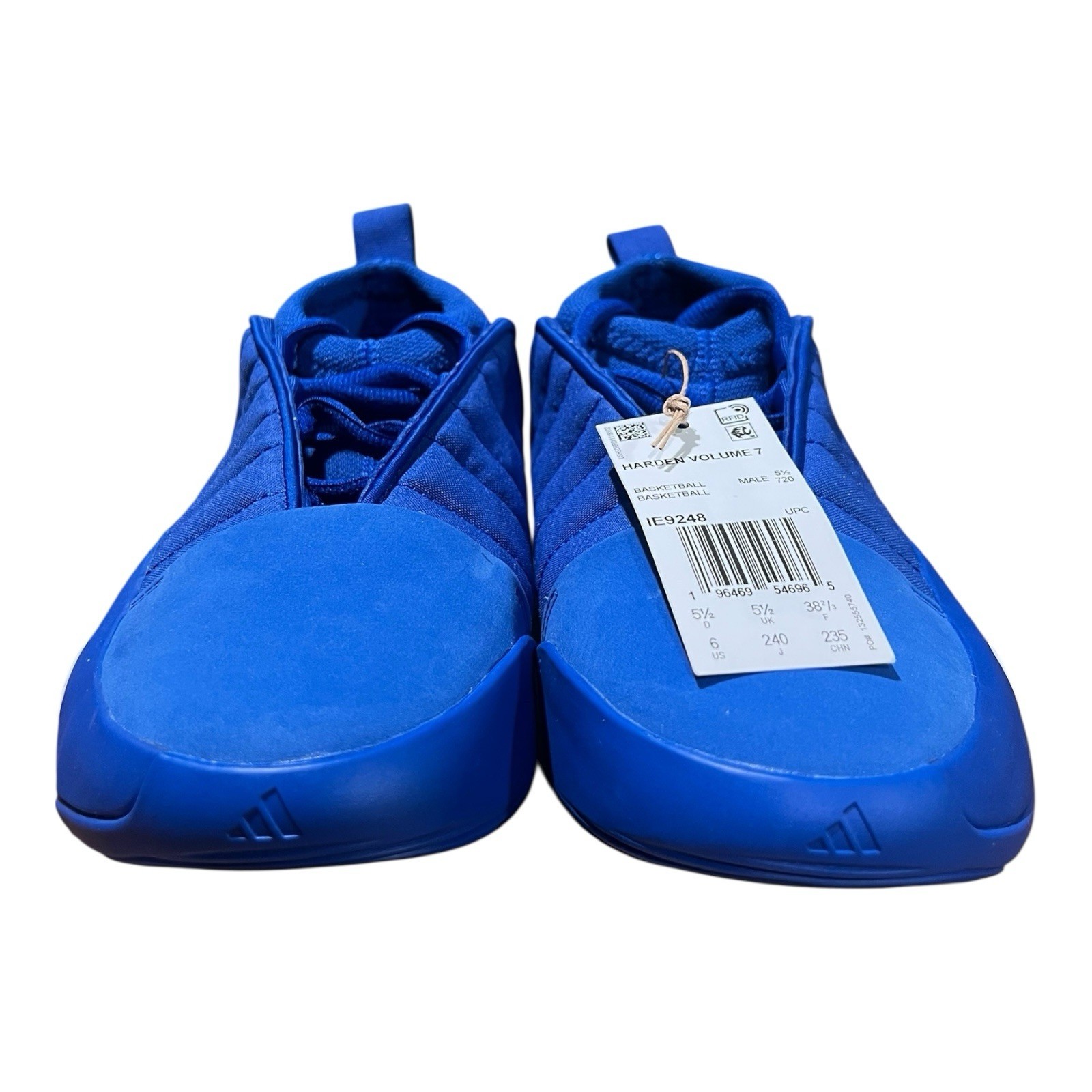 The product is a size 6 men's adidas Harden Vol. 7 Royal Blue sneaker, featuring a textile upper material and a stylish design with a royal theme. This athletic shoe from the adidas Harden product line is perfect for those looking for a comfortable and fashionable footwear option. The vibrant blue color adds a pop of color to any outfit, making it a versatile choice for everyday wear or sports activities.