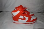 This Nike Dunk SP 2021 High Syracuse sneaker in size 6.5 features a High Top shoe shaft style in a vibrant White/Orange Blaze colorway. Worn twice