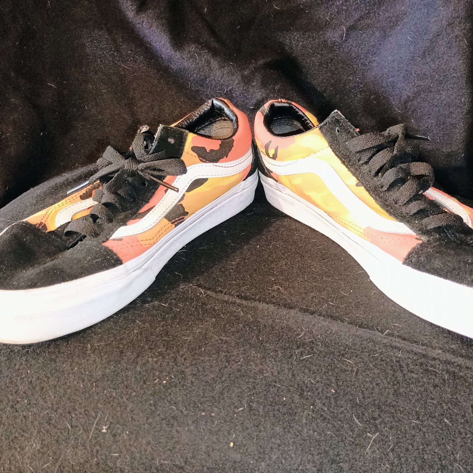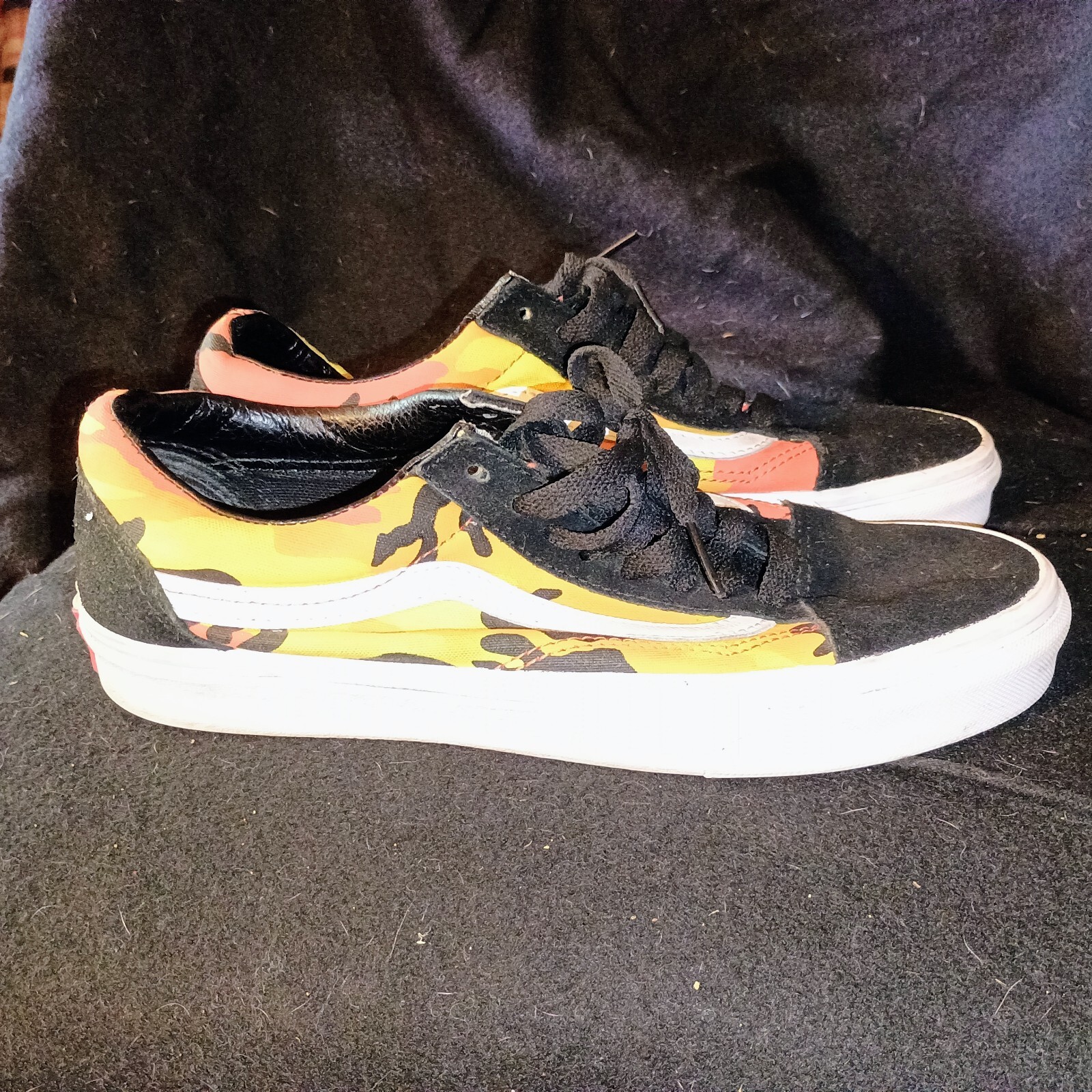 Step into style with the VANS Old Skool Pop Camo sneakers, a vibrant addition to any casual ensemble. The distinctive orange colorway is complemented by the iconic VANS design, creating a look that's both bold and timeless. These shoes are a size 6.5, tailored for men who appreciate a comfortable yet fashionable fit.Crafted for the sneaker enthusiast, the VANS Old Skool model boasts a sleek, athletic build with a colorful theme that pays homage to the shoe's skate-inspired heritage. Men's size 6.5, women's size 8.