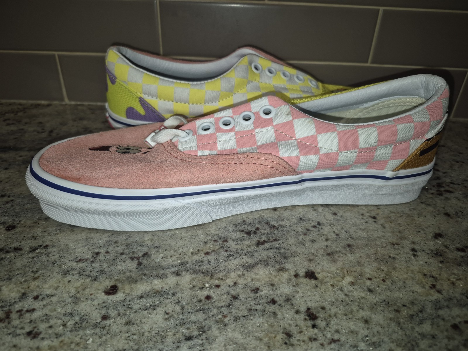 Shoes are new but one shoe is MISSING SHOE LACE. And they may have a couple marks from being moved around storage.