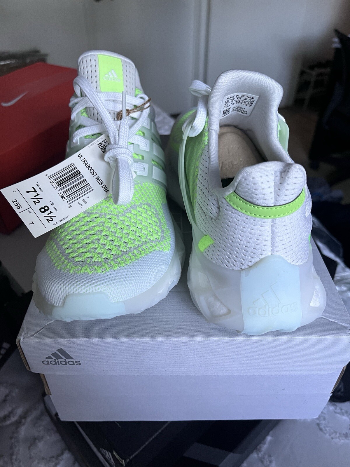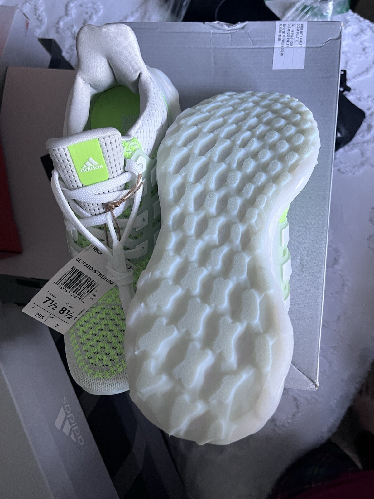 Adidas Unisex Shoes Running Shoes Dash Grey/Footwear White/Pulse Lime Synthetic & Rubber Adidas Ultraboost Web Dna Mens Shoes