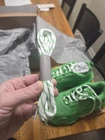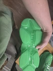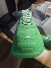 The product is a pair of Balenciaga Triple S sneakers in size 8, featuring a green colorway. This athletic shoe is designed specifically for women and is part of the Balenciaga Triple S product line. Made with nylon upper material, the sneakers are stylish and offer a comfortable fit for everyday wear. With a release year of 2021, these sneakers are a fashionable choice for those looking to add a touch of luxury to their footwear collection. Keeps resale vale if u take care of it. Banger!
