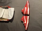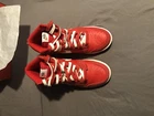 Introducing the Nike Dunk SE High First Use Pack in the striking University Red colorway (DH0960-600). This sneaker, designed for men, features a high top shoe shaft style and a suede upper material. The shoe is part of the Nike Dunk product line and is modeled after the classic Nike Dunk sneaker. The shoe comes in a size 8 and is perfect for athletic use. It also includes a style code of DH0960-600 and is compatible with UK shoe size 7, US shoe size 8, and EU shoe size 41. Don't miss out on the chance to add this stylish and functional sneaker to your wardrobe. Worn once but in great condition!