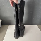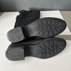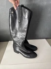This is a pair of Sam Edelman Women's Penny riding boots in size 8. They are made of black leather with a low heel and have a zipper accent. The boots have a regular calf width and are designed for the winter season. The style is riding/equestrian, with a classic look suitable for various occasions.