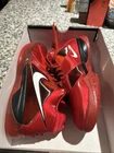 This is a size 8.5 NEW Nike Zoom KD 3 Retro All Star sneaker in Challenge Red, released in 2023. It features a lightweight and water-resistant design, ideal for activewear or casual occasions. The shoe is part of the Nike KD product line and is customized with limited edition American university-themed details. With a lace-up closure and low-top shaft style, this athletic sneaker offers comfort and performance for various activities like basketball and running. The red color and retro design make it a stylish and vibrant choice for men looking for a standout footwear option.