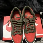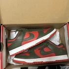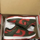 Step up your game with the Nike Dunk Low Cargo Khaki Mystic Red in size 8.5. These sneakers feature a sleek design with a vibrant Mystic Red/Cargo Khaki/White colorway that makes a statement with every stride. The low-top style offers a comfortable fit perfect for all-day wear, while the leather upper ensures durability and support. The Nike Dunk remains a beloved icon in the sneaker world, and this pair from the 2023 release lineup is no exception. With the style code DV0833-600, you can be confident in the authenticity of your purchase. Whether you're hitting the streets or just looking for a stylish addition to your collection, these athletic shoes are a versatile choice for any trendsetter.